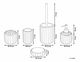 1 x Cană/ Pahar, 1 x Suport periuțe dinți, 1 x perie WC, 1 x Dozator săpun, 1 x Săpunieră