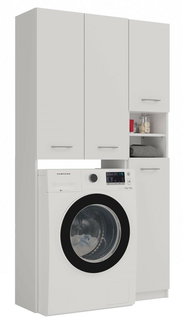 Dulapurile deasupra mașinii de spălat sunt ideale pentru băile mici. Nu ocupă mult spațiu și oferă suficient spațiu de depozitare pentru detergenți.