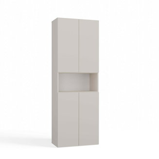 Un dulap înalt este o alegere excelentă pentru depozitarea prosoapelor, a produselor cosmetice sau a unui coș de rufe. De obicei, are o înălțime de 150 cm sau mai mult. În ceea ce privește lățimea și adâncimea dulapului, oferta este largă. Modelele mai inguste cu o lățime de 30 cm vor umple perfect spațiile goale din baie. La rafturi sau sertare, este posibilitatea de alegere și a dulapurilor laterale. Unele tipuri au și coșul de rufe încorporat. Dulapul deasupra chiuvetei este ideal pentru depozitarea medicamentelor și a produselor cosmetice, incluzând adesea o oglindă.