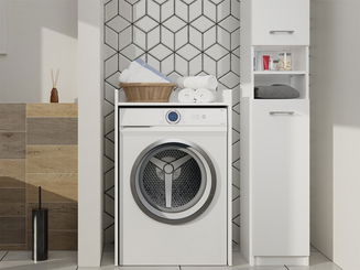 Cu dulapul deasupra mașinii de spălat, puteți economisi spațiu chiar și într-o baie mică. Această piesă de mobilier creează un loc perfect pentru mașina de spălat. Oferă desigur și rafturi de depozitare deasupra acesteia, ceea ce vă va oferi spațiu suplimentar de depozitare.