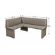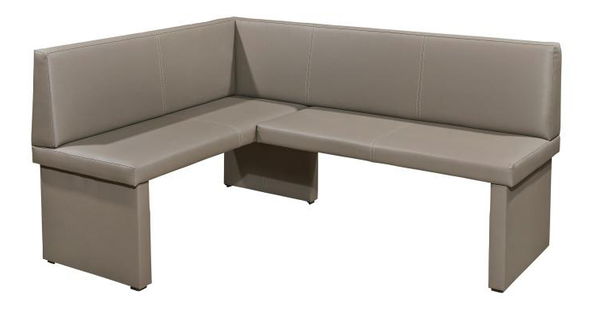 Bancă de sufragerie de colț tapițată cu piele ecologică de înaltă calitate, pe versiunea color de capucino. Versiune pe stânga.