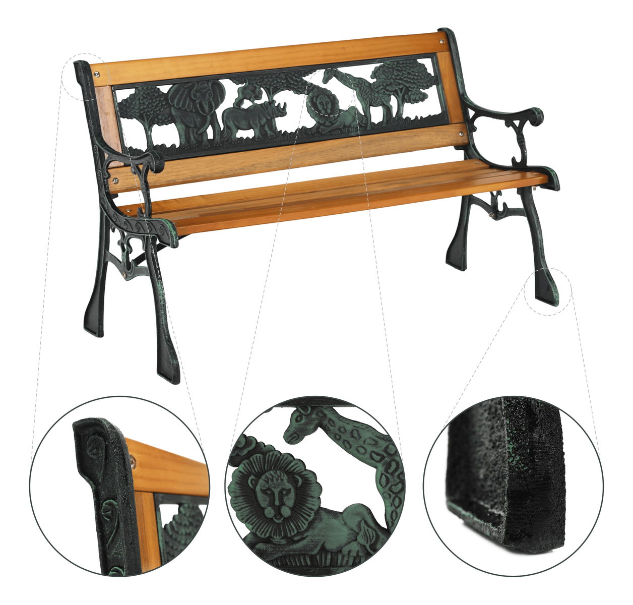 O bancă minunată de înaltă calitate. Copiilor de la grădiniță le-au plăcut în mod deosebit animalele sălbatice de pe spătar.