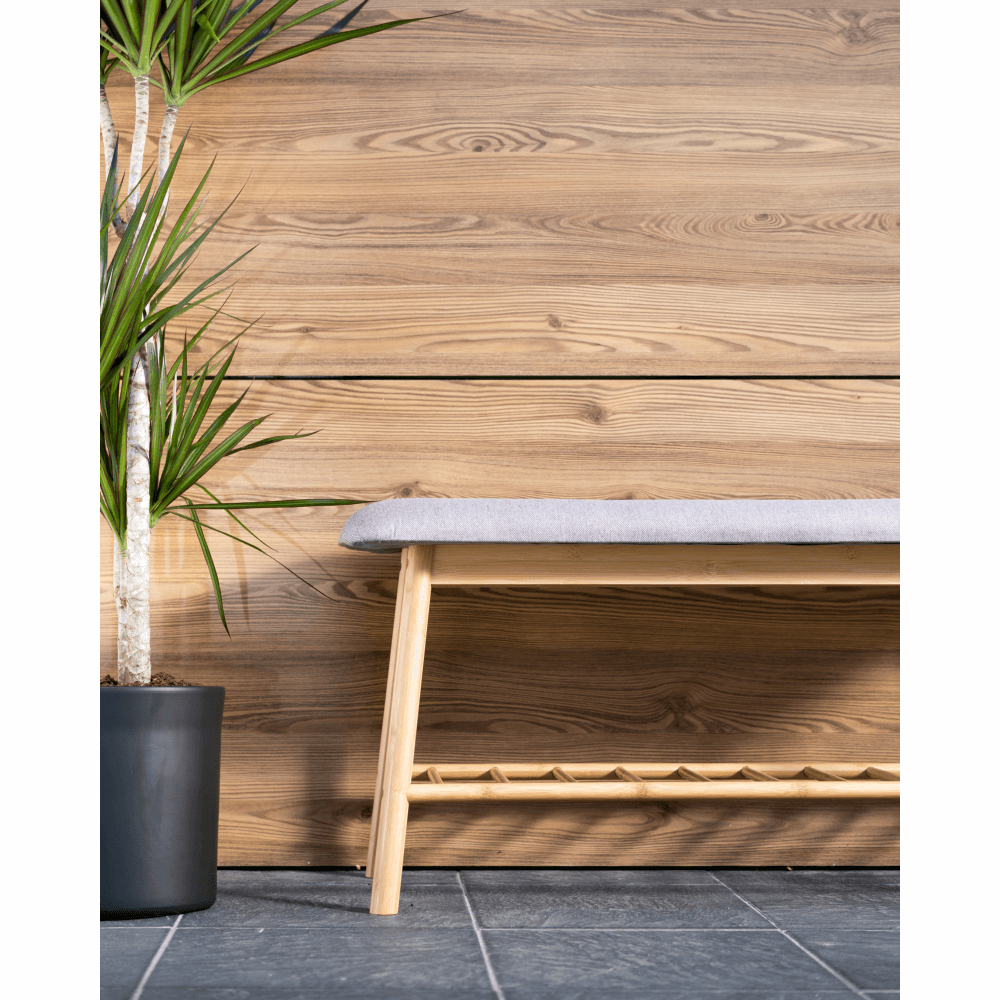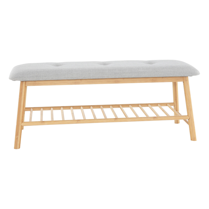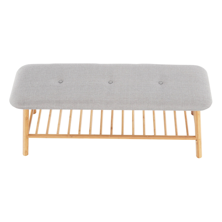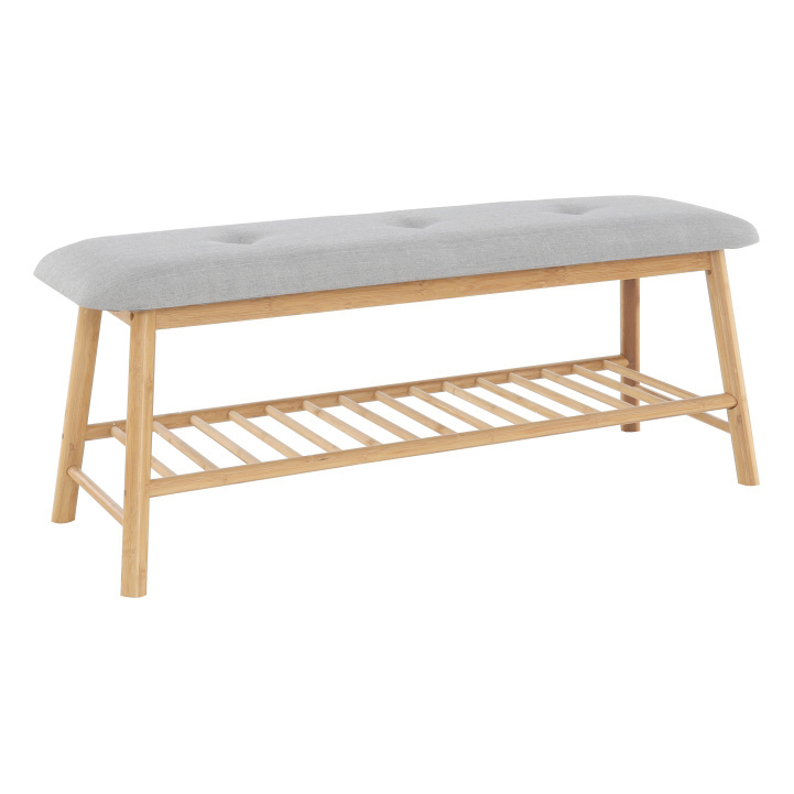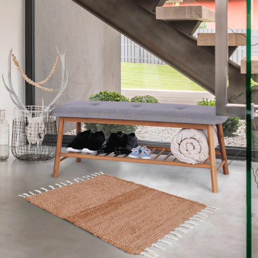 Banca Laordin TIP 3 oferă spațiului dvs. o atmosferă simplă, naturală, confortabilă și relaxantă. Rama este realizată din bambus lăcuit, partea de șezut este tapițată cu material gri. Banca oferă un spațiu de depozitare în partea inferioară, unde vă puteți pune pantofii dvs. și astfel să mențineţi ordinea în hol. Este potrivită și în bucătărie sau în camera de zi aranjată în stil rural.