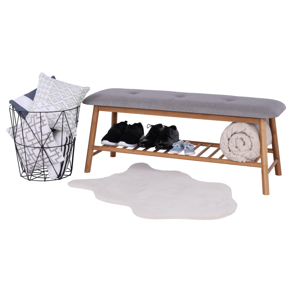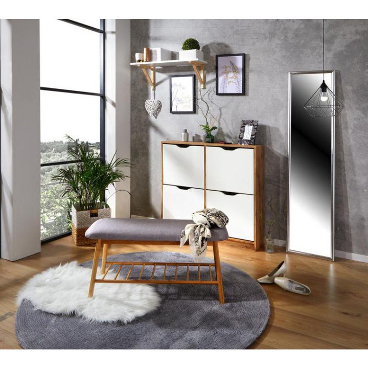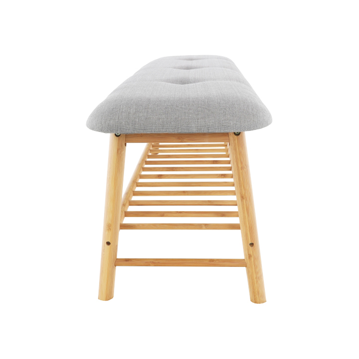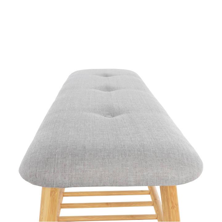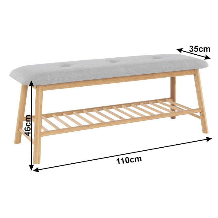 Banca Laordin TIP 3 oferă spațiului dvs. o atmosferă simplă, naturală, confortabilă și relaxantă. Rama este realizată din bambus lăcuit, partea de șezut este tapițată cu material gri. Banca oferă un spațiu de depozitare în partea inferioară, unde vă puteți pune pantofii dvs. și astfel să mențineţi ordinea în hol. Este potrivită și în bucătărie sau în camera de zi aranjată în stil rural.