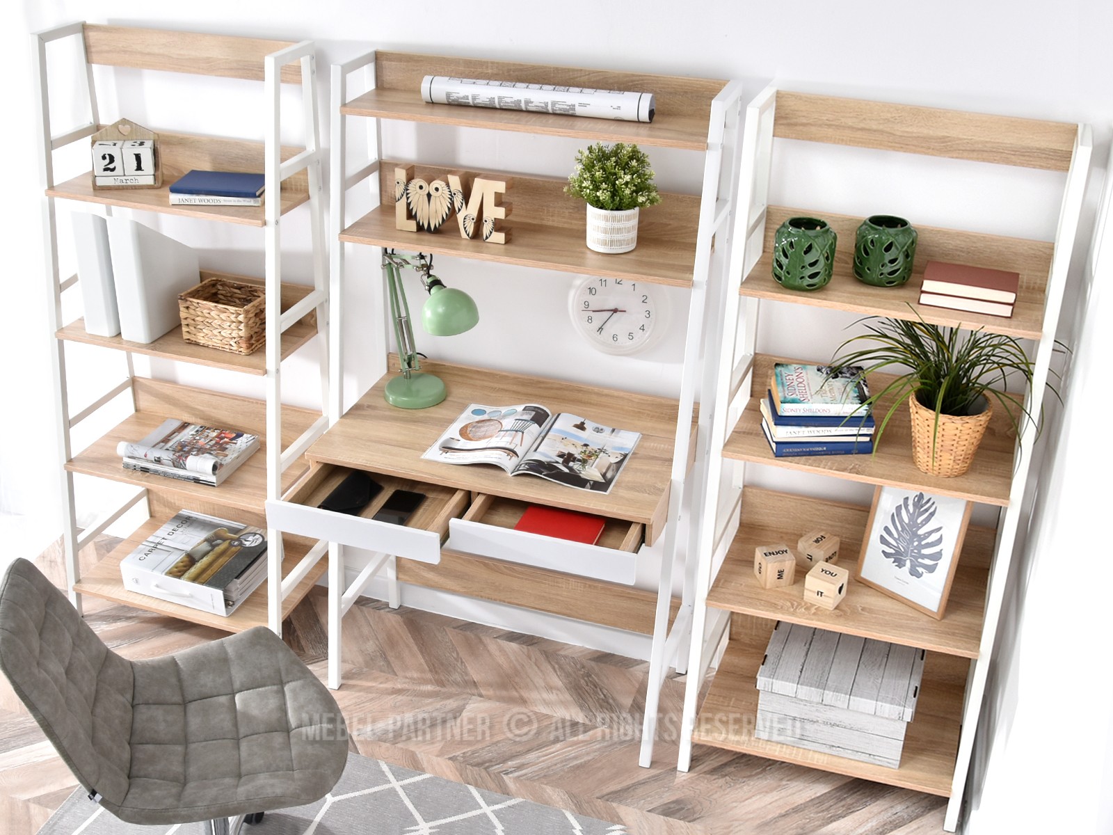 Birou Boge Z (stejar alb + alb)