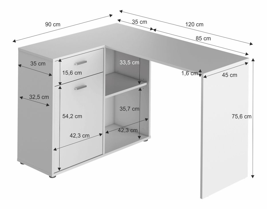 Birou de colț pentru PC Kalimoro (alb) *resigilat