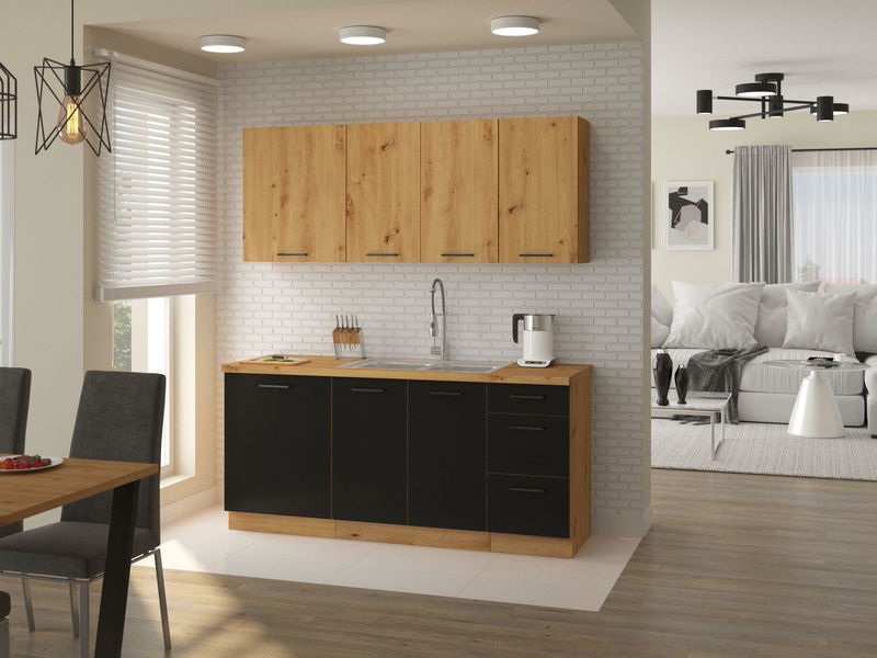 - Bucătărie 240 cm Miraluna (Stejar artisan + Negru mat)