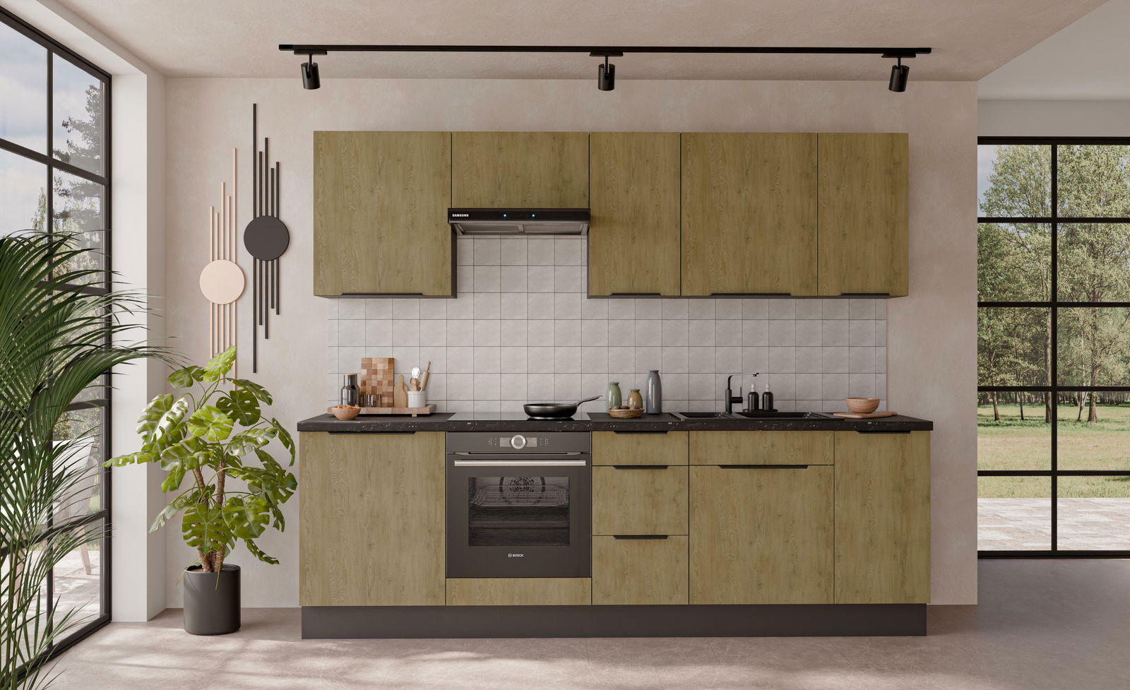 Bucătărie 260 cm Carminia 2 (stejar cremona + antracit)
