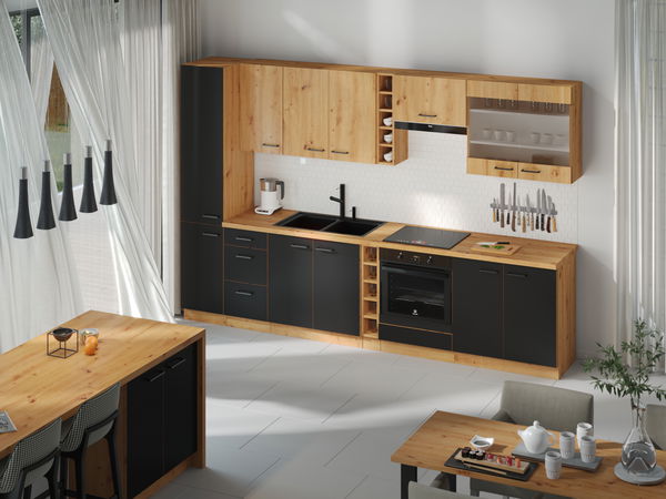 - Bucătărie 315 cm Miraluna (Stejar artisan + Negru mat)