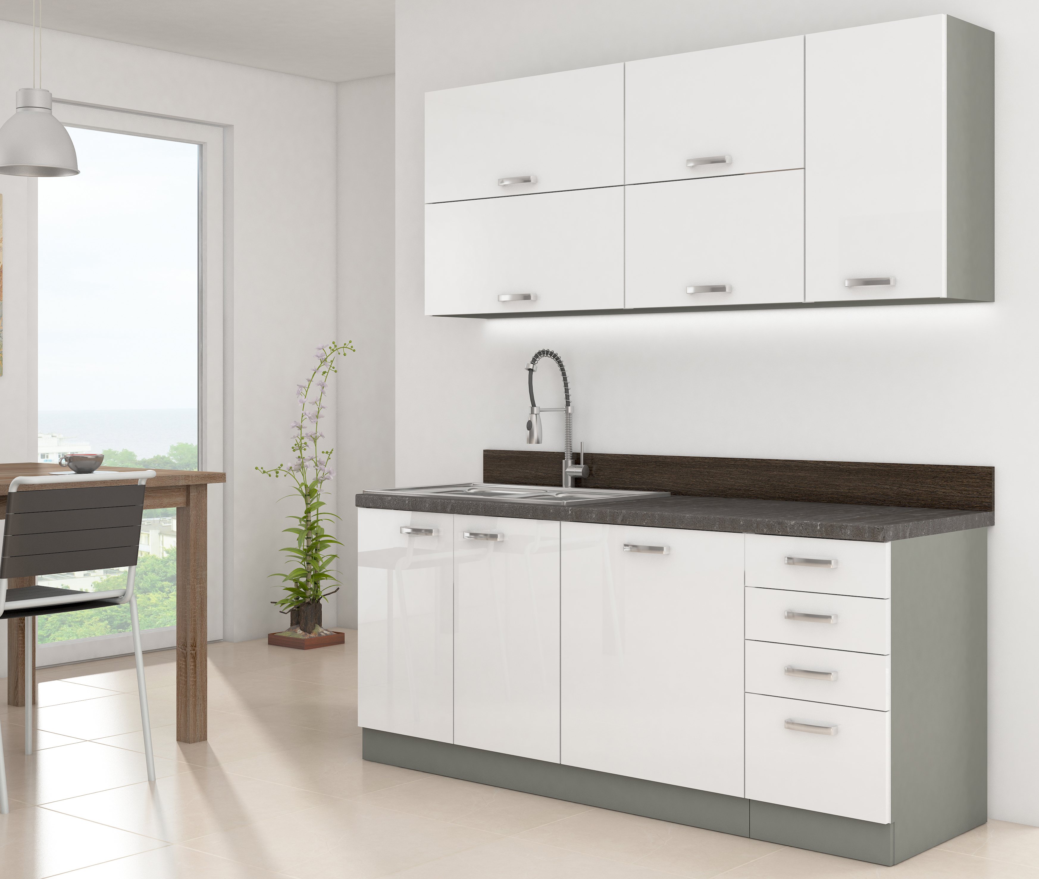 Bucătărie Brunea 180 cm (gri + alb lucios) *vânzare