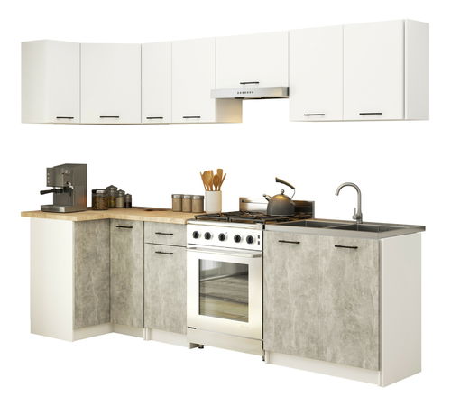 Bucătărie de colț 300 cm Ozara III (Alb + beton)