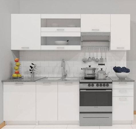 Bucătăria Flor 14 într-o versiune albă atemporală combină designul modern, prelucrarea precisă și materialele de înaltă calitate care garantează o viață lungă. Spatiile de depozitare sunt concepute pentru a oferi solutii practice de organizare a ustensilelor de bucatarie, sporind functionalitatea si confortul. Această bucătărie este un plus elegant pentru casă, ideală pentru utilizarea de zi cu zi, precum și pentru îndeplinirea cerințelor exigente ale unui stil de viață modern.
