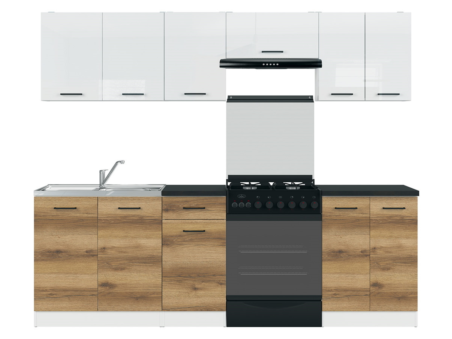 Bucătărie Junona line 240 cm (alb lucios + stejar delano deschis)