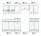 Bucătăria este livrată cu blaturile de lucru pe dulapurile din partea inferioară cu dimensiuni de 40 cm și 60 cm. Dulapul pentru chiuvetă este livrat fără chiuvetă și blatul de lucru.