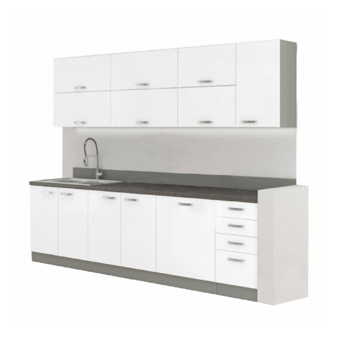 Bucătărie Primula 260 cm (gri + Alb extra lucios)