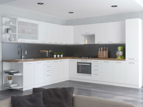 Bucătăria Strolis 58 în alb oferă un design modern și atemporal care se potrivește în orice interior. Detaliile prelucrate cu precizie și materialele de înaltă calitate asigură durabilitatea și durata lungă de viață a mobilierului. Spațiile de depozitare concepute practic oferă suficient spațiu pentru organizarea convenabilă a ustensilelor de bucătărie. Liniile minimaliste și un design elegant fac din această bucătărie un set ideal pentru cei care caută o combinație de funcționalitate, calitate și estetică.