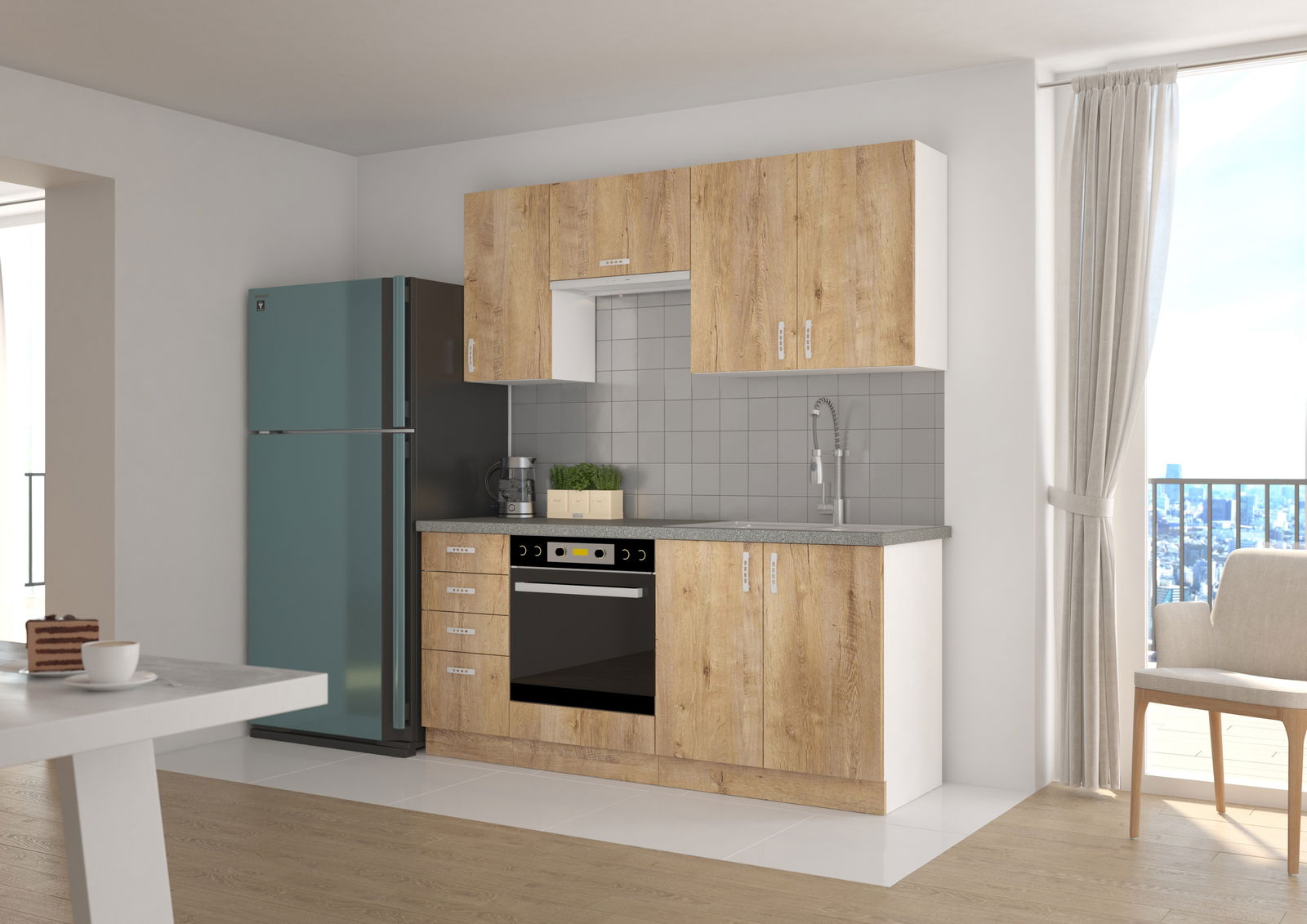 - Bucătărie Sylrona 180 cm (stejar lefkas + alb)