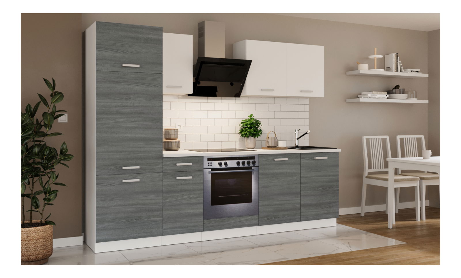 Bucătărie Tanith 260 cm (skagerrak + alb) *vânzare stoc