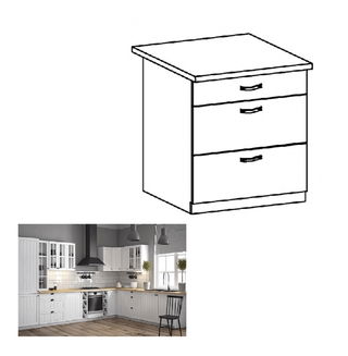 Dulap inferior de bucătărie D80S3 Provense (Alb + sosna andersen)