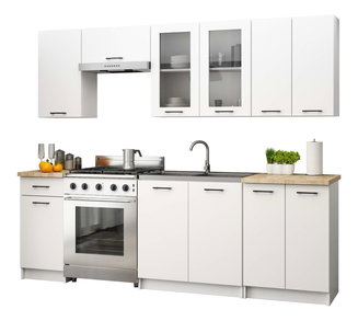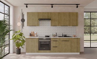 Pentru început măsurați cu atenție spațiul în care va fi plasată noua bucătărie. În oferta noastră puteți găsi bucătării cu dimensiuni de 180 cm, 240 cm, 250 cm și 260 cm lățime, dar și dimensiuni atipice. De asemenea, marcați locul unde se află alimentarea cu apă și prizele electrice. Mașina de spălat vase trebuie să fie lângă chiuvetă blatul între chiuvetă și araz să fie un blat de lucru de minim 80 cm.