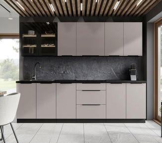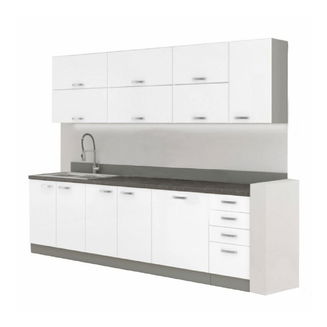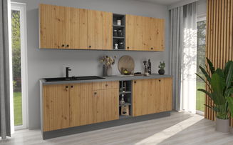 Pentru început măsurați cu atenție spațiul în care va fi plasată noua bucătărie. În oferta noastră puteți găsi bucătării cu dimensiuni de 180 cm, 240 cm, 250 cm și 260 cm lățime, dar și dimensiuni atipice. De asemenea, marcați locul unde se află alimentarea cu apă și prizele electrice. Mașina de spălat vase trebuie să fie lângă chiuvetă blatul între chiuvetă și araz să fie un blat de lucru de minim 80 cm.