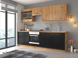 Pentru început măsurați cu atenție spațiul în care va fi plasată noua bucătărie. În oferta noastră puteți găsi bucătării cu dimensiuni de 180 cm, 240 cm, 250 cm și 260 cm lățime, dar și dimensiuni atipice. De asemenea, marcați locul unde se află alimentarea cu apă și prizele electrice. Mașina de spălat vase trebuie să fie lângă chiuvetă blatul între chiuvetă și araz să fie un blat de lucru de minim 80 cm.