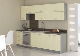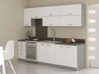 Pentru început măsurați cu atenție spațiul în care va fi plasată noua bucătărie. În oferta noastră puteți găsi bucătării cu dimensiuni de 180 cm, 240 cm, 250 cm și 260 cm lățime, dar și dimensiuni atipice. De asemenea, marcați locul unde se află alimentarea cu apă și prizele electrice. Mașina de spălat vase trebuie să fie lângă chiuvetă blatul între chiuvetă și araz să fie un blat de lucru de minim 80 cm.