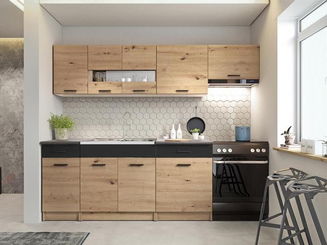 Pentru început măsurați cu atenție spațiul în care va fi plasată noua bucătărie. În oferta noastră puteți găsi bucătării cu dimensiuni de 180 cm, 240 cm, 250 cm și 260 cm lățime, dar și dimensiuni atipice. De asemenea, marcați locul unde se află alimentarea cu apă și prizele electrice. Mașina de spălat vase trebuie să fie lângă chiuvetă blatul între chiuvetă și araz să fie un blat de lucru de minim 80 cm.