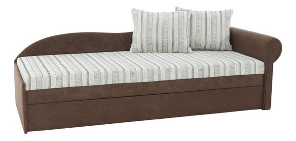 Canapea de 3 locuri tapițată cu stofă de șenil Narnia aurie în combinație cu micro fază se potrivește atât în livingul dvs. precum și în birou sau camera de studenți. Canapeaua este extensibilă, creând astfel o zonă practică de dormit. În spațiul generos de depozitare puteți plasa perne sau lenjeria de pat. Versiunea pe stânga a canapelei.