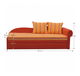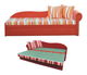 Canapea de 3 locuri, care se potrivește mai ales într-o cameră de zi clasic decorată, la locul de muncă sau într-o cameră de studenți. Este tapițată cu material din bumbac Ba14 de culoare portocalie în combinație cu stofa Alova. În urma deschiderii se creează practic un pat dublu. În spațiul mare de depozitare, vă puteți pune pernele sau lenjeria de pat. Designul canapelei este realizat pe partea dreaptă.