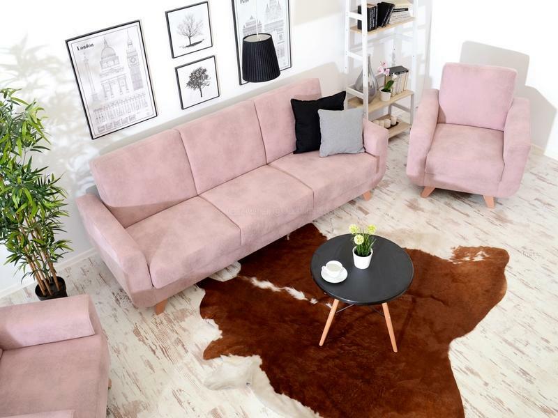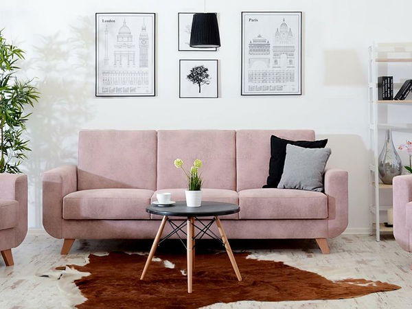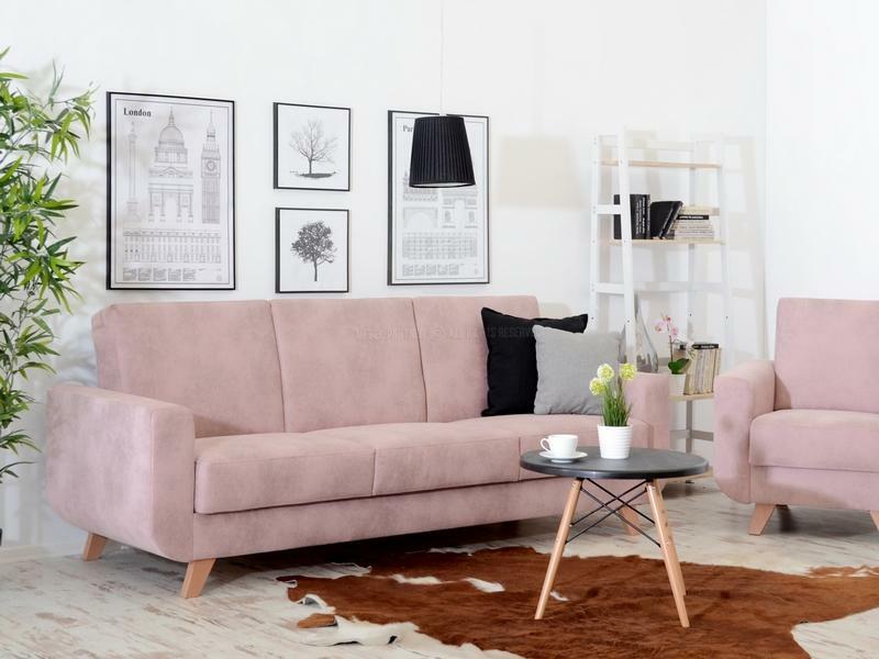 Canapea Canapea trei locuri Kalisz (pudră roz + sticlă)