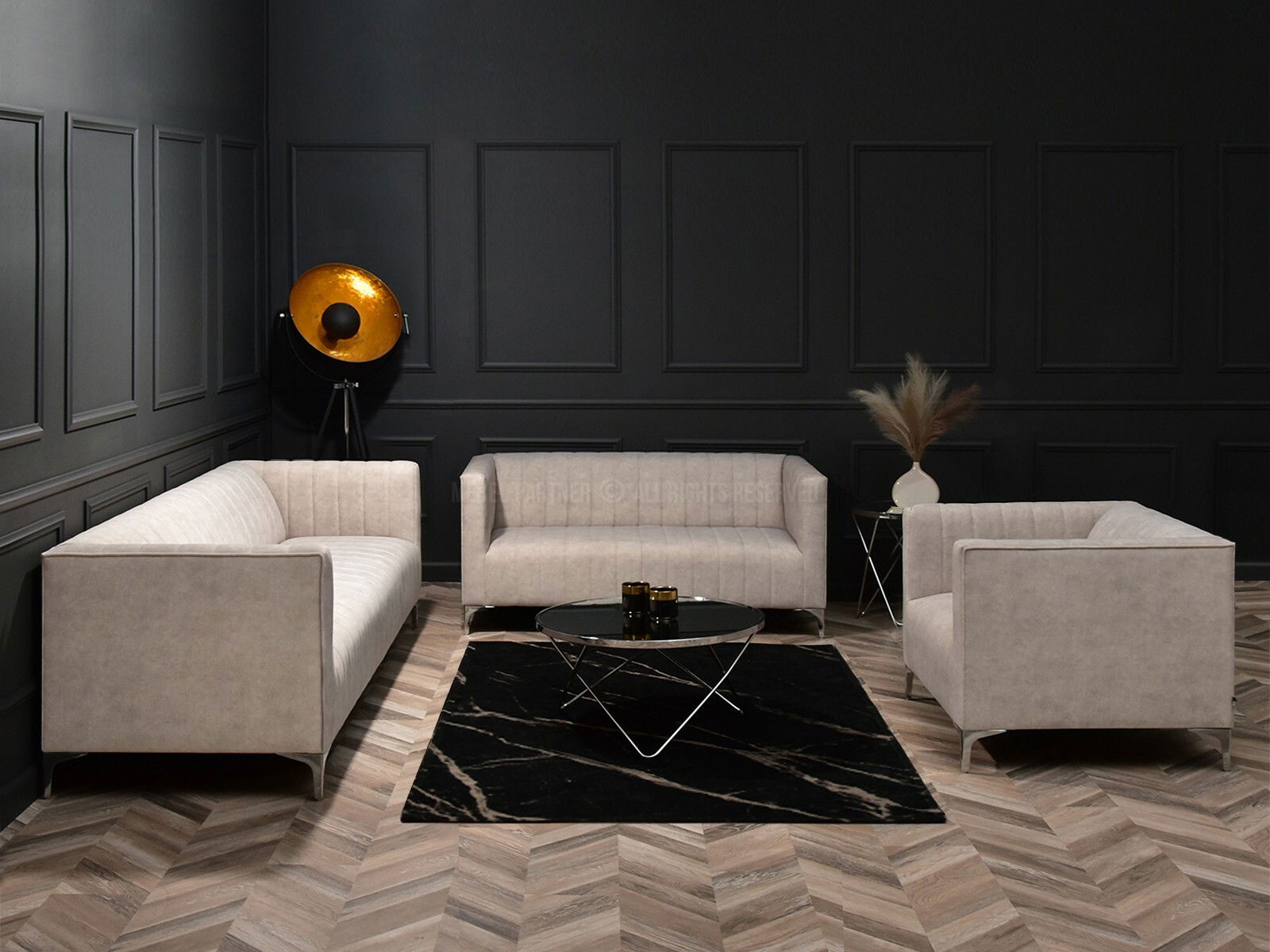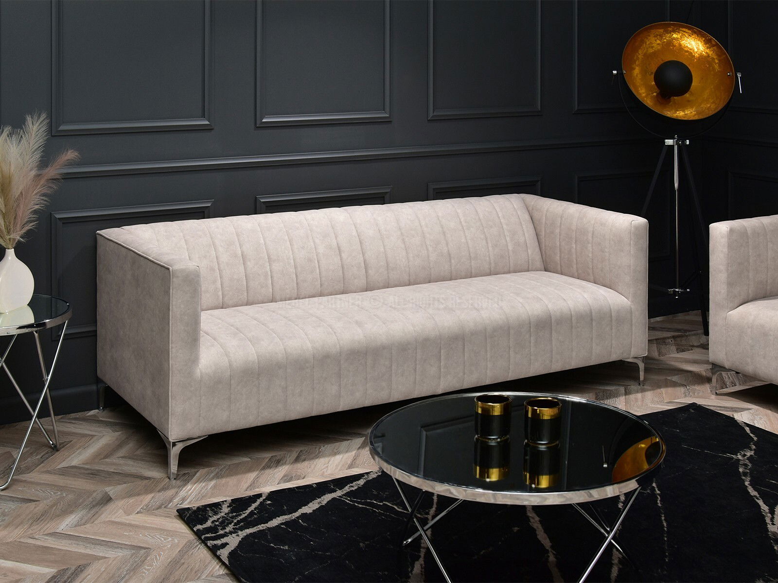 Canapea Canapea trei locuri Recalentada (nisipiu + crom)