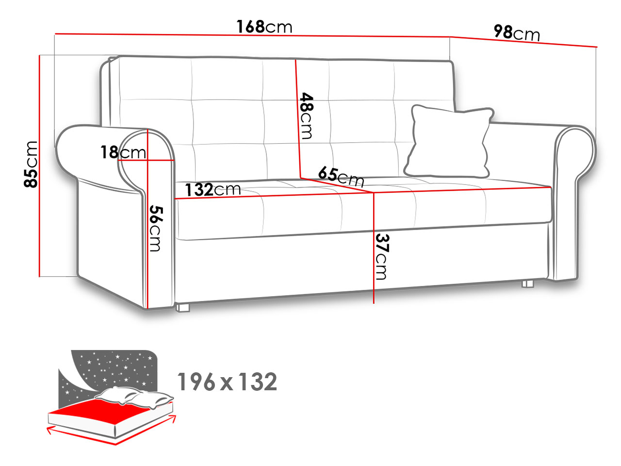 Spațiu de dormit: 196 x 132 cm