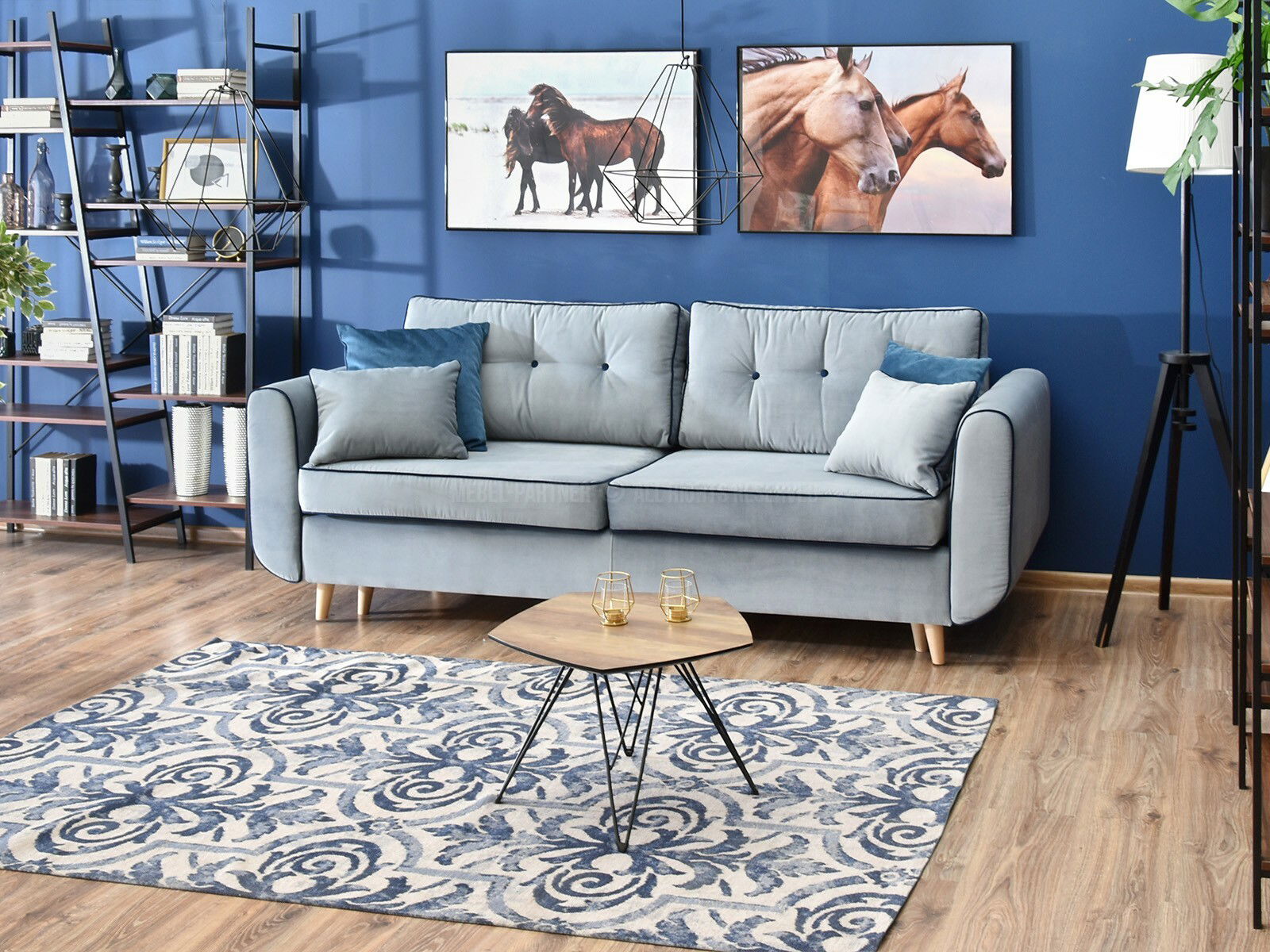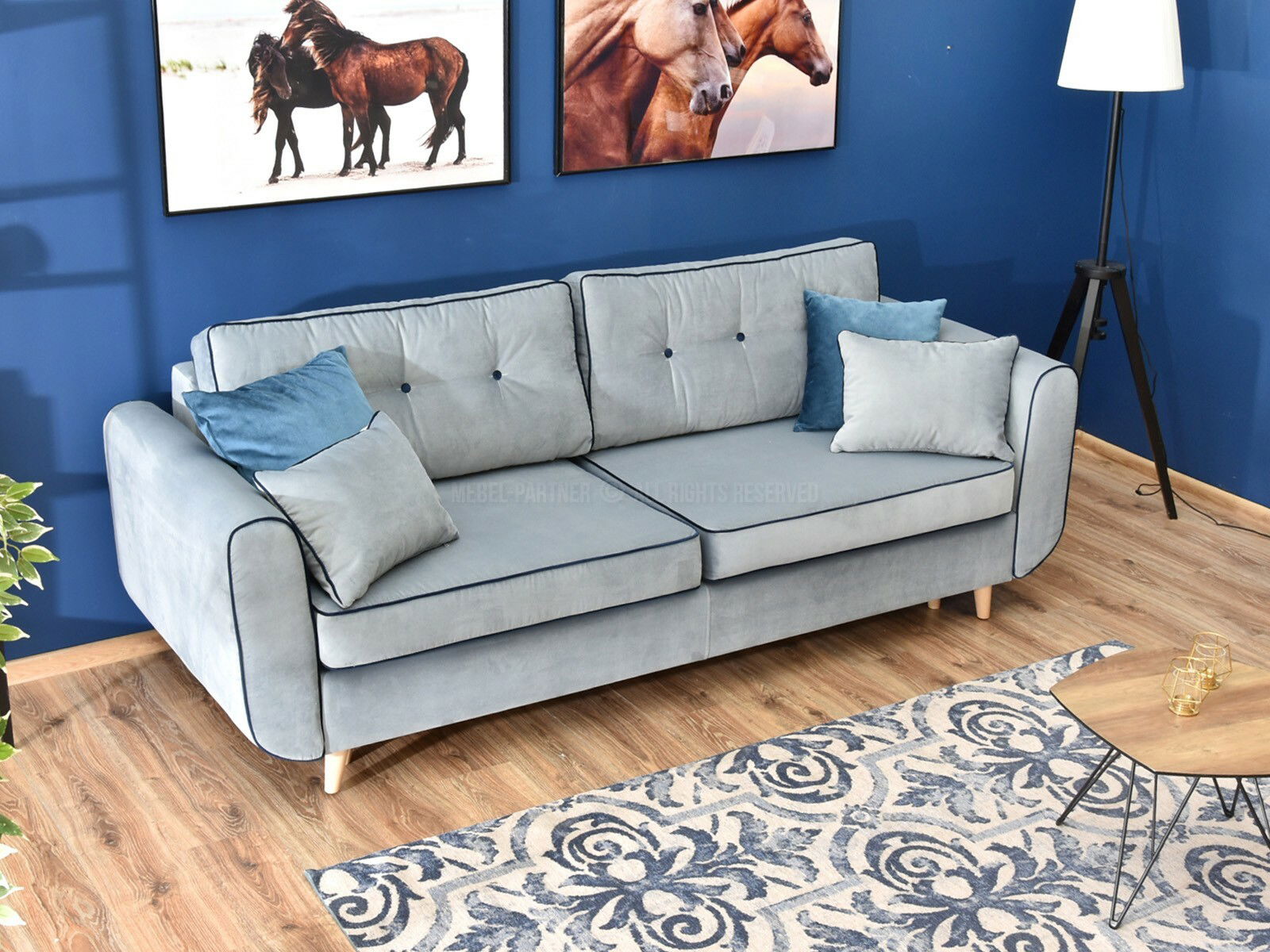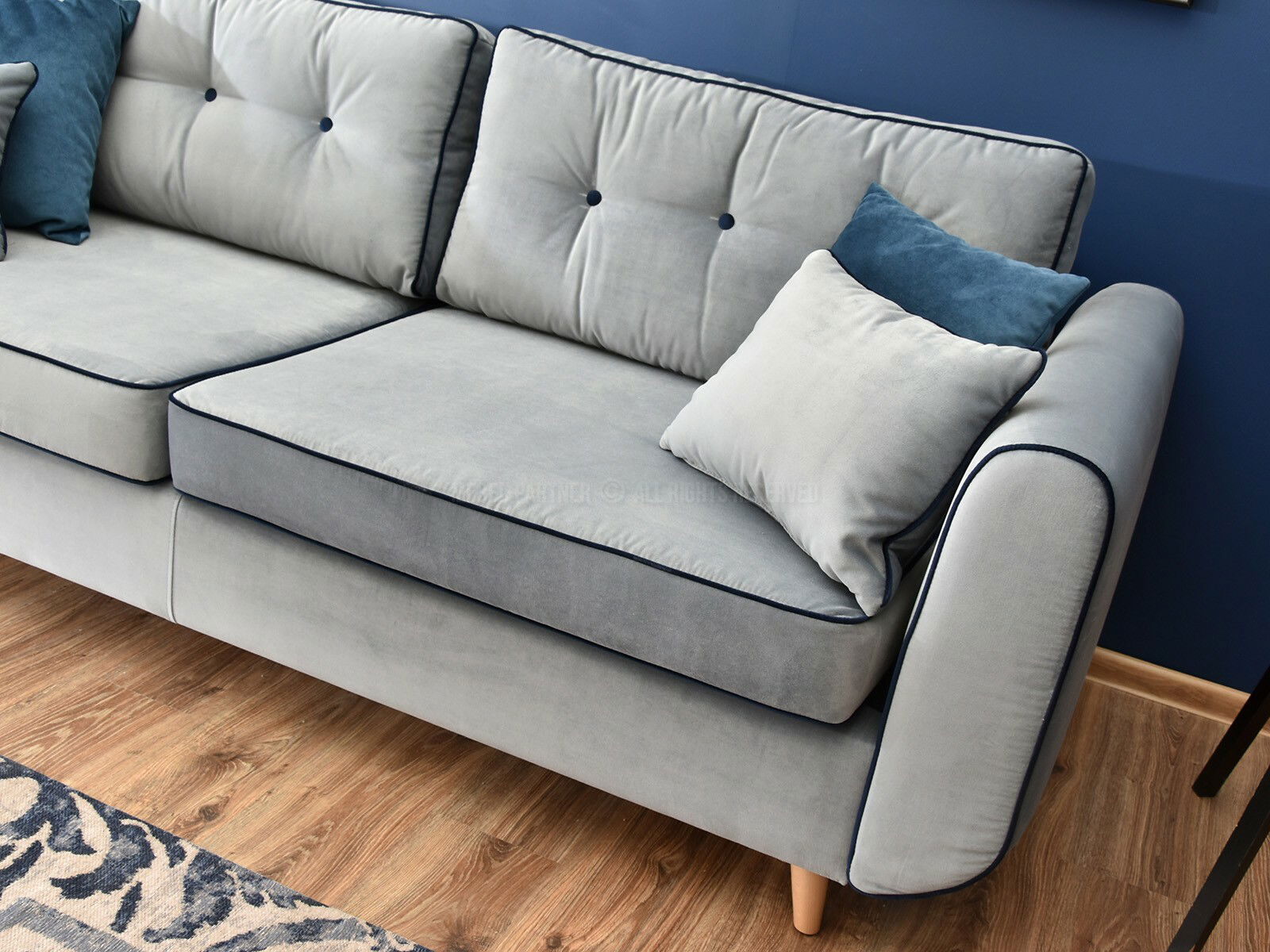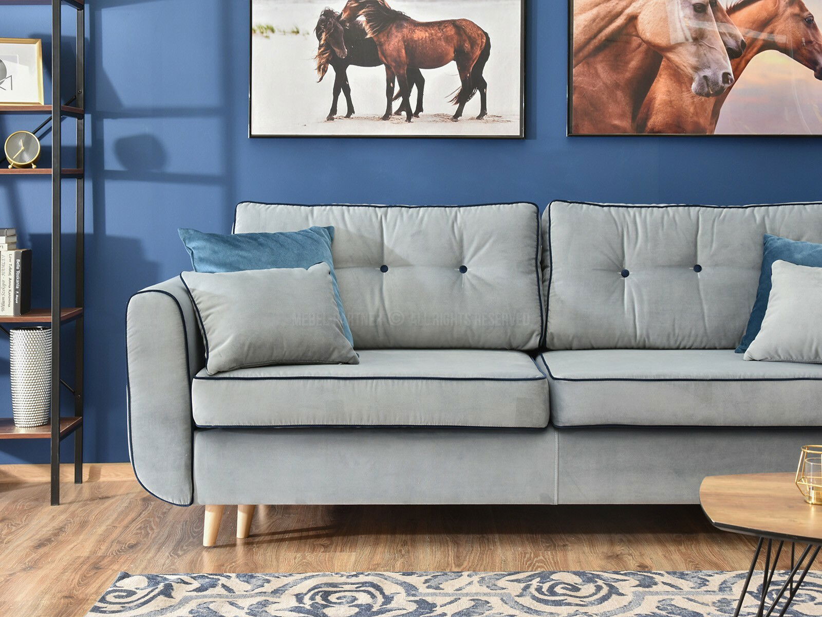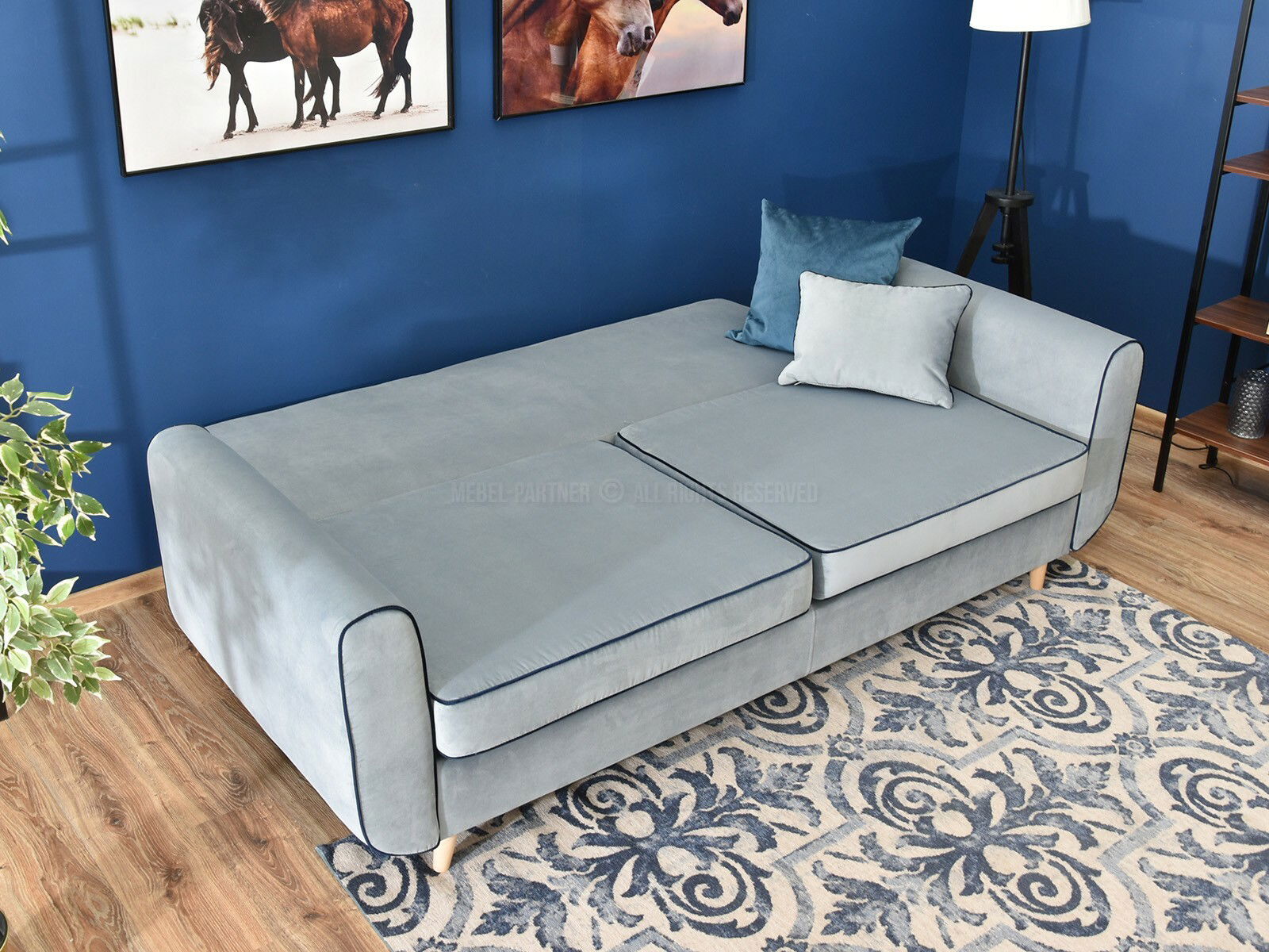 Canapea două locuri Bacteria (albastru + stejar)