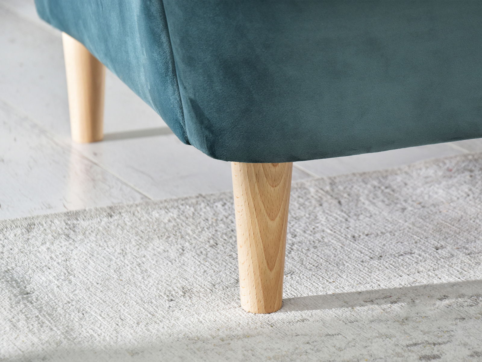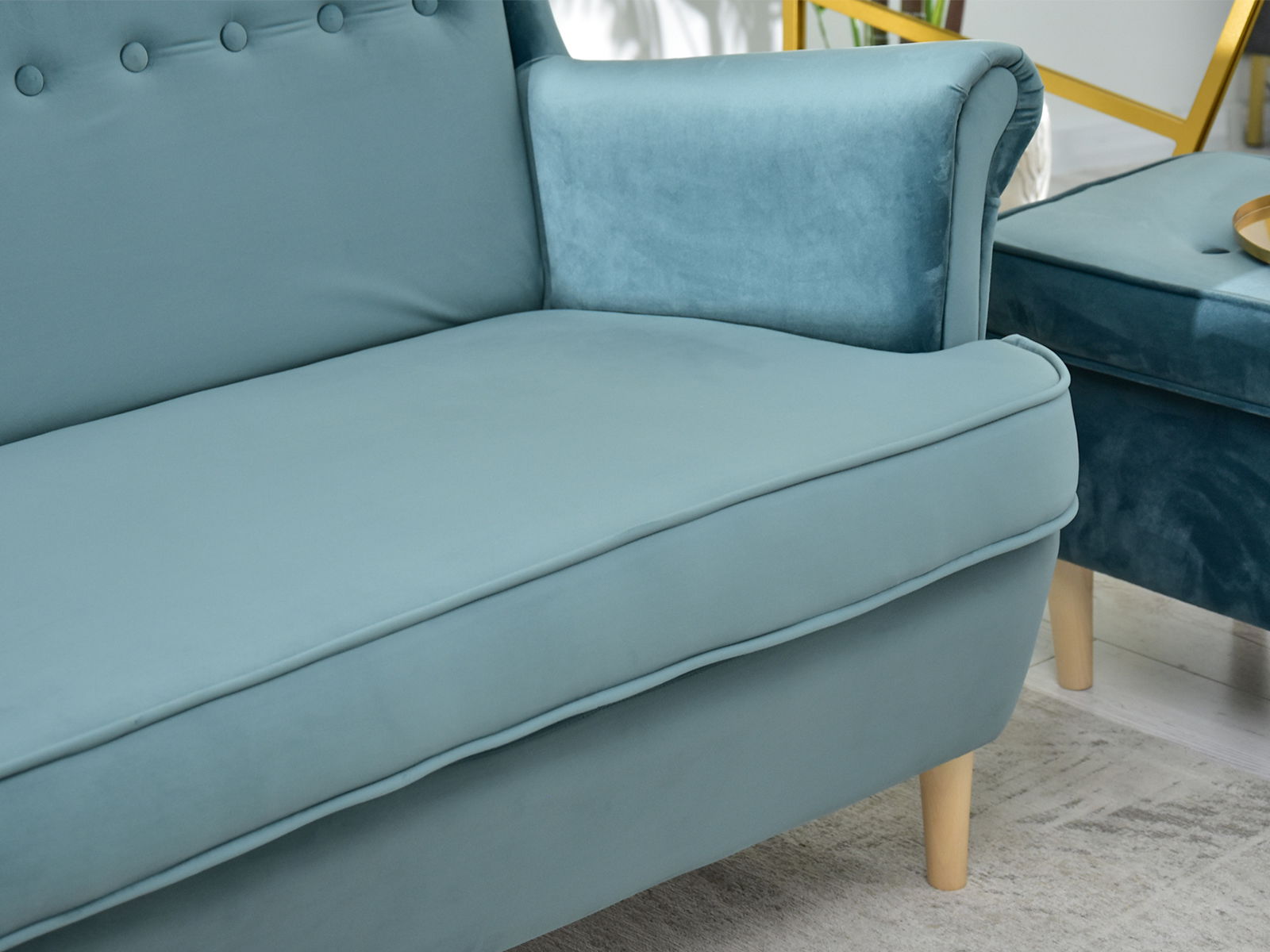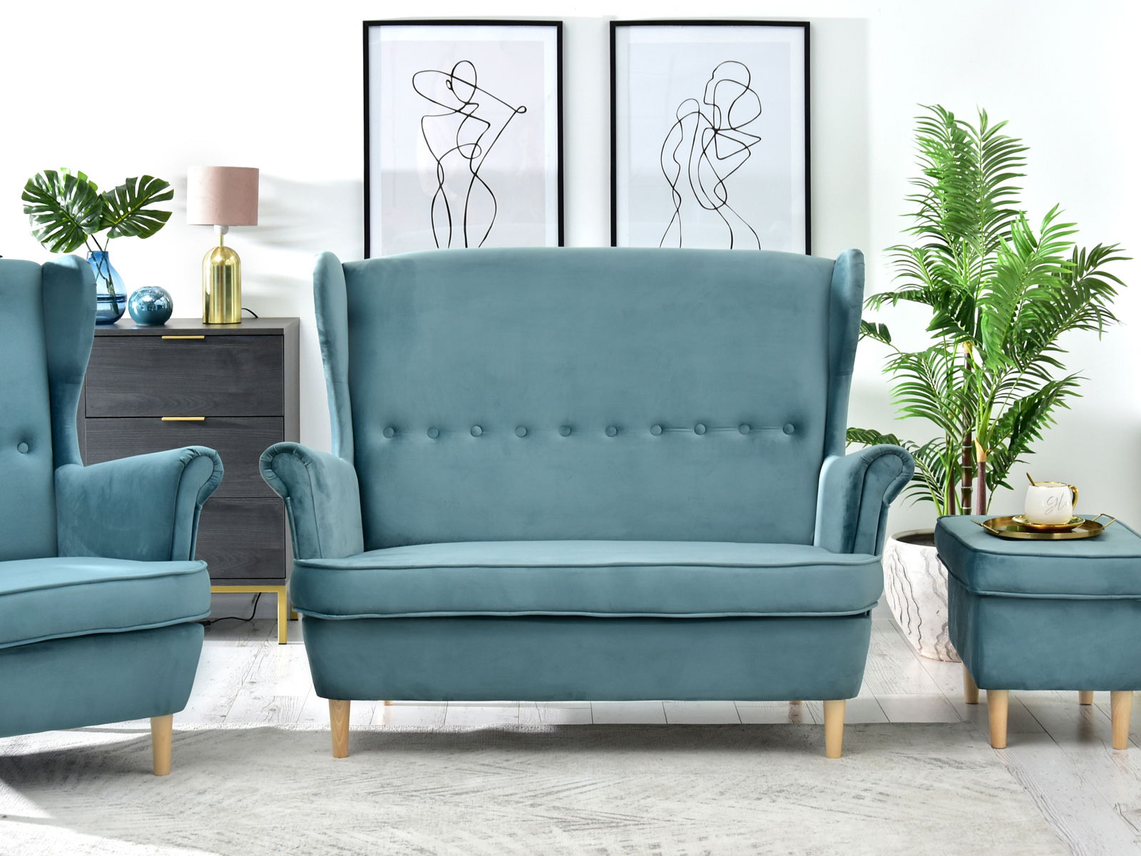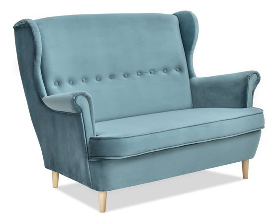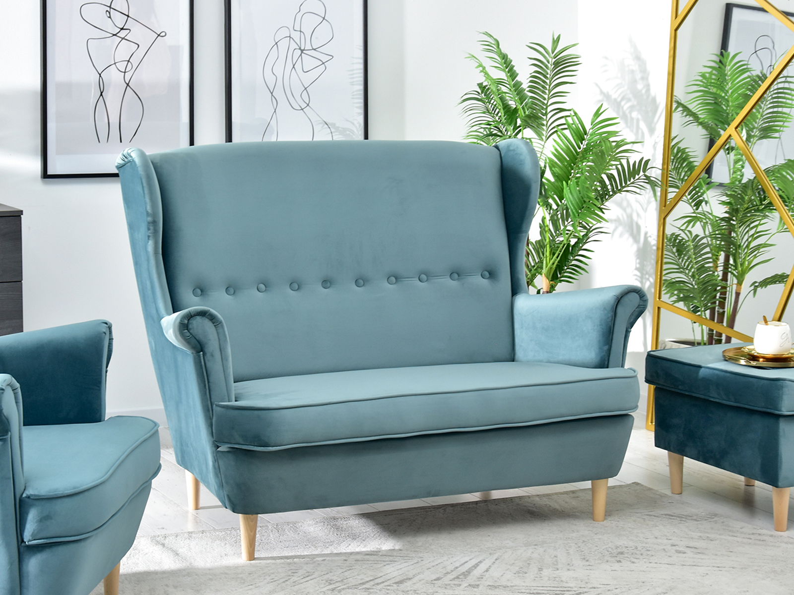 Canapea două locuri cu formă urechi Muriera (albastru + nuc)