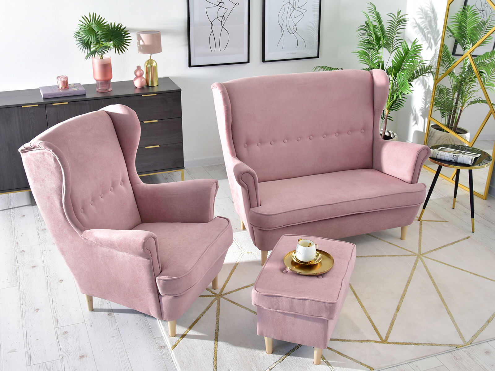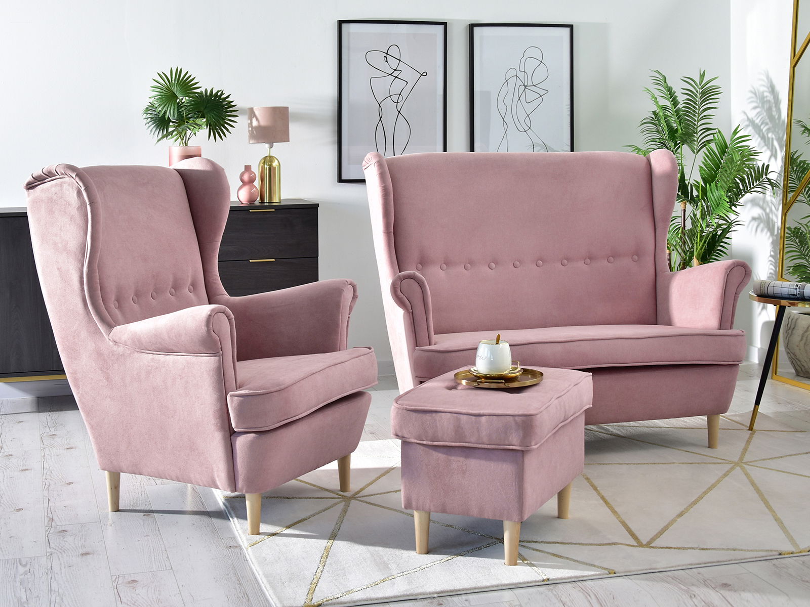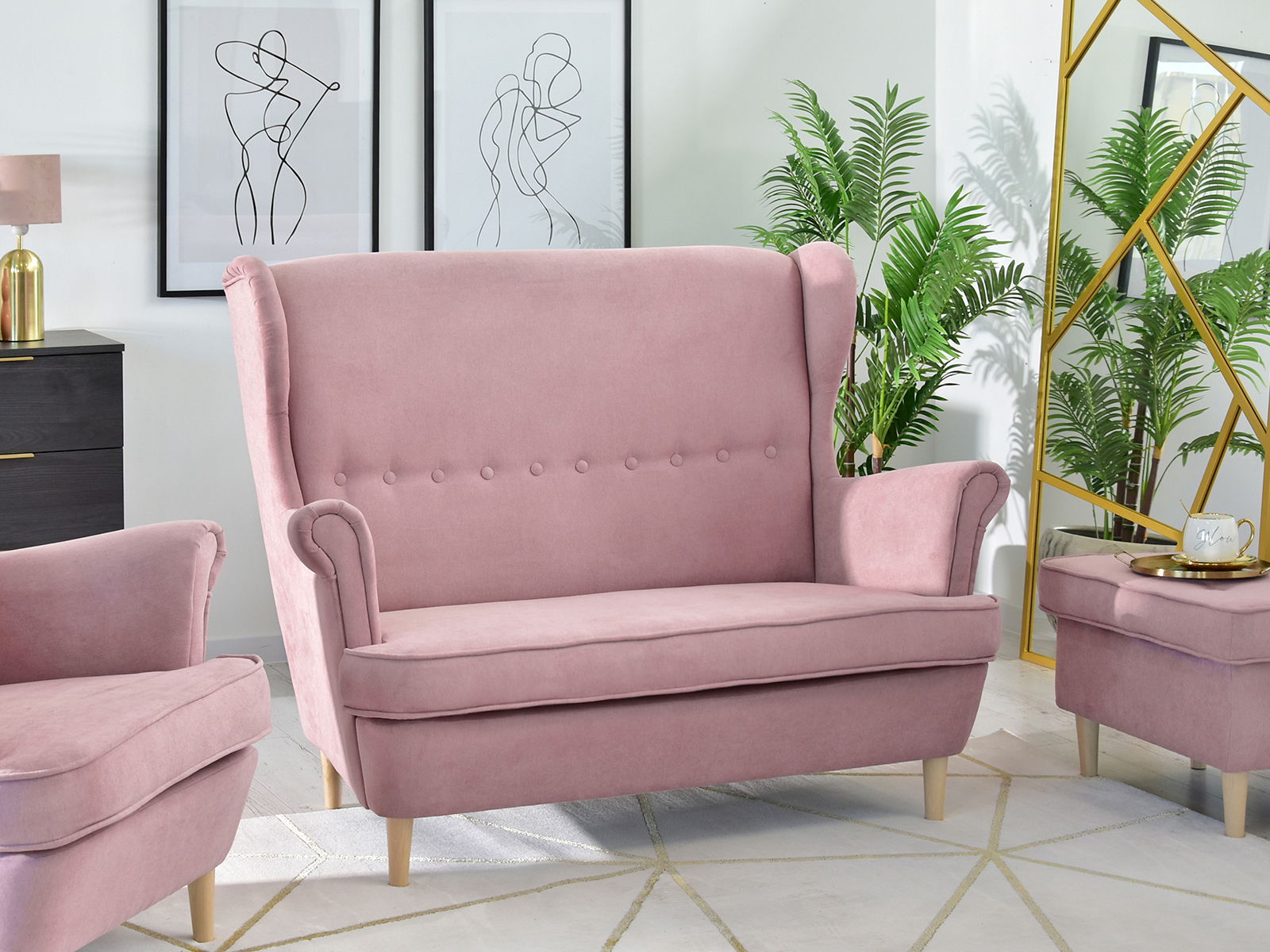 Canapea două locuri cu formă urechi Muriera (pudră + nuc)