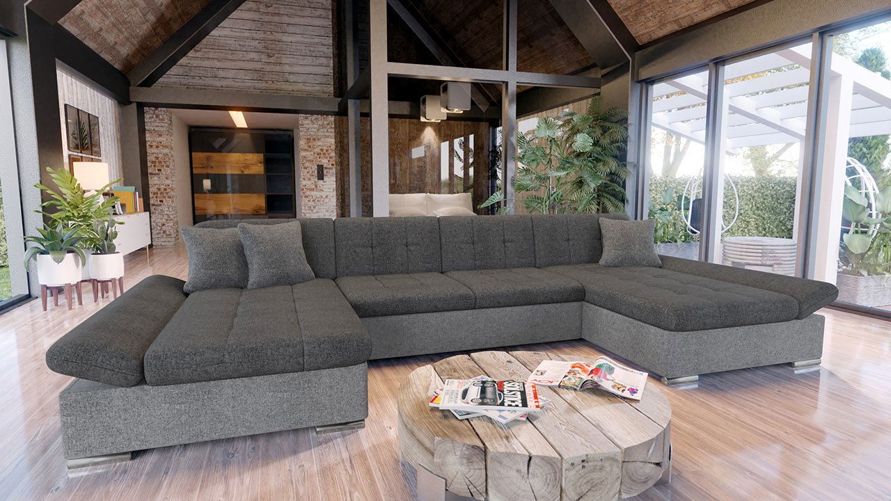 colțarul în formă de U este extensibil și oferă două spații de depozitare. Cotierele sunt reglabile și se livrează cu set de perne (3 mici) - cu fermoar