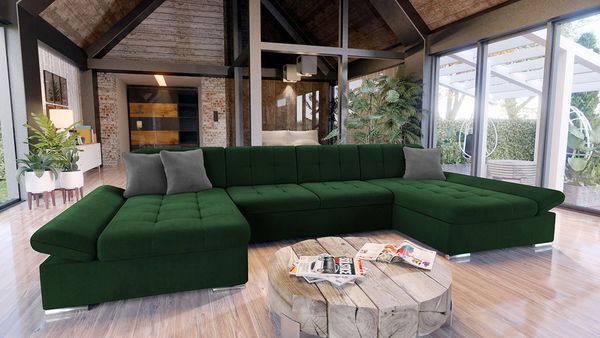 colțarul în formă de U este extensibil și oferă două spații de depozitare. Cotierele sunt reglabile și se livrează cu set de perne (3 mici) - cu fermoar