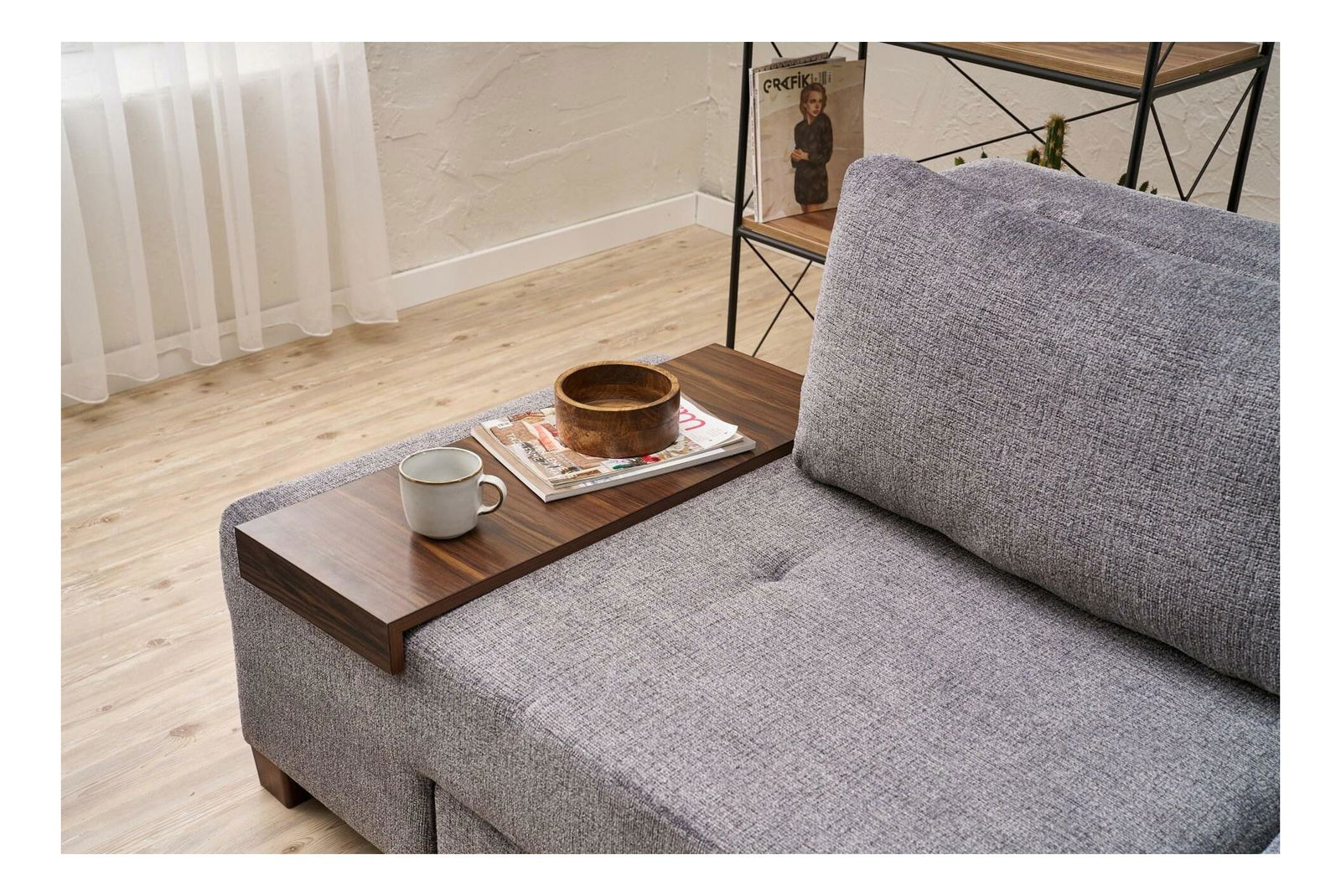 - Canapea extensibilă Perenilla C (gri + Nuc)