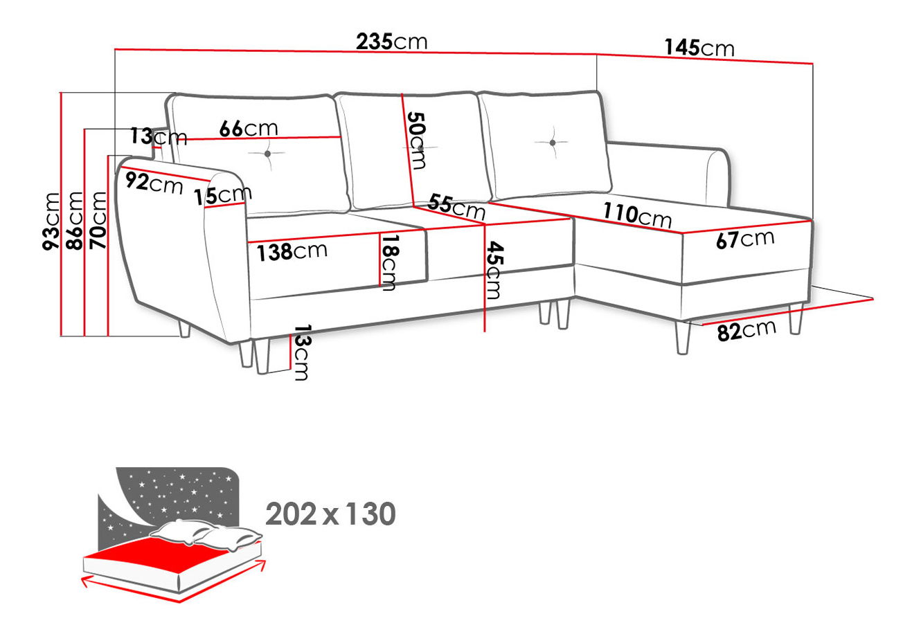 202 x 130 cm