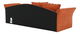 Canapea de 3 locuri potrivită pentru camera de zi, locul de muncă, birou sau camera de studenți. Este tapițată cu stofă Alova de culoare portocaliu. Două perne cu dungi sunt incluse în preț. Este extensibilă, formând astfel un loc de dormit. În spațiul de depozitare puteți pune pernele sau lenjeria de pat. Are elemente decorative din lemn masiv într-o nuanță de arin.