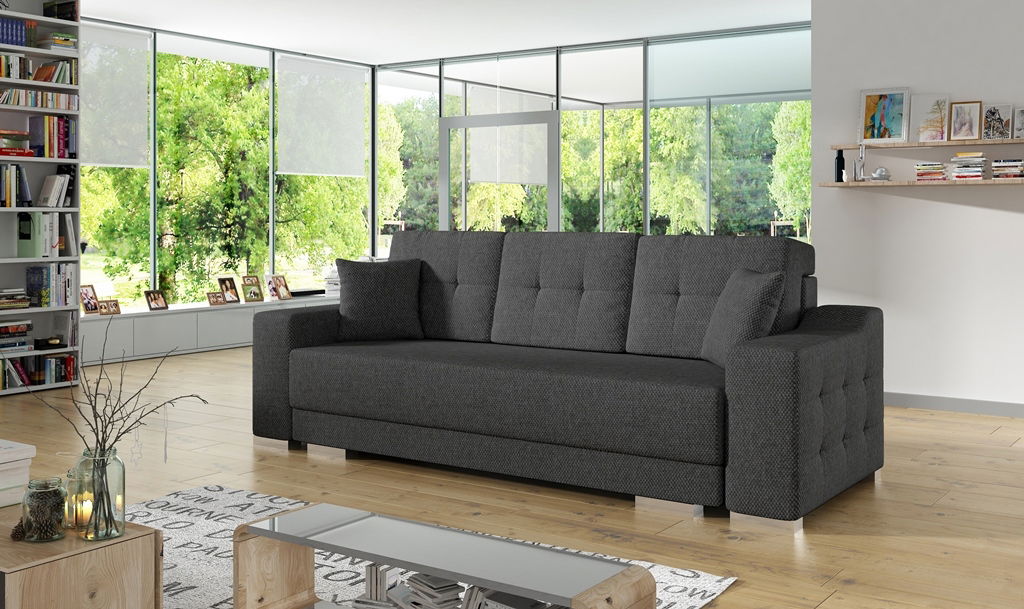 AfișeazăCanapea stilată Clay este disponibilă în mai multe versiuni color. Canapeaua extensibilă este potrivită și pentru un somn ocazional.