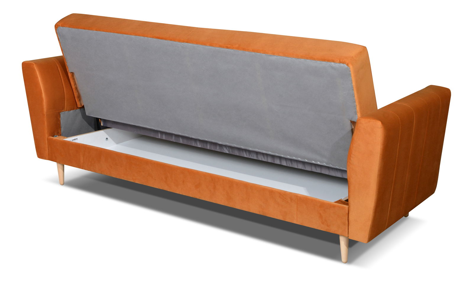 Spate tapițat cu stofă sintetică gri .