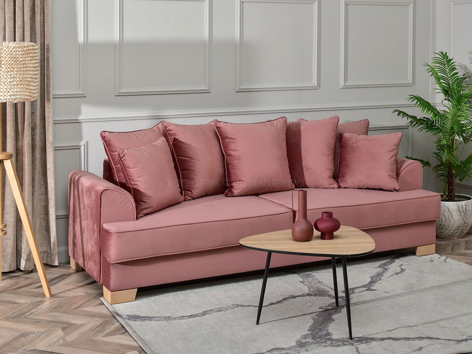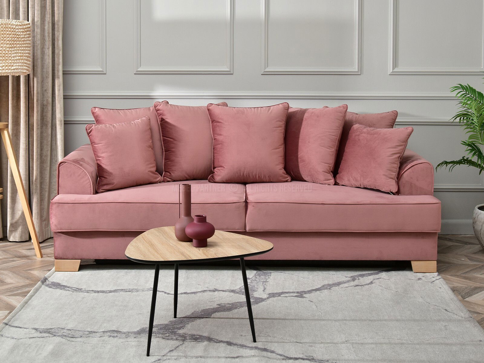 Canapea trei locuri Marilyn (pudră + fag)