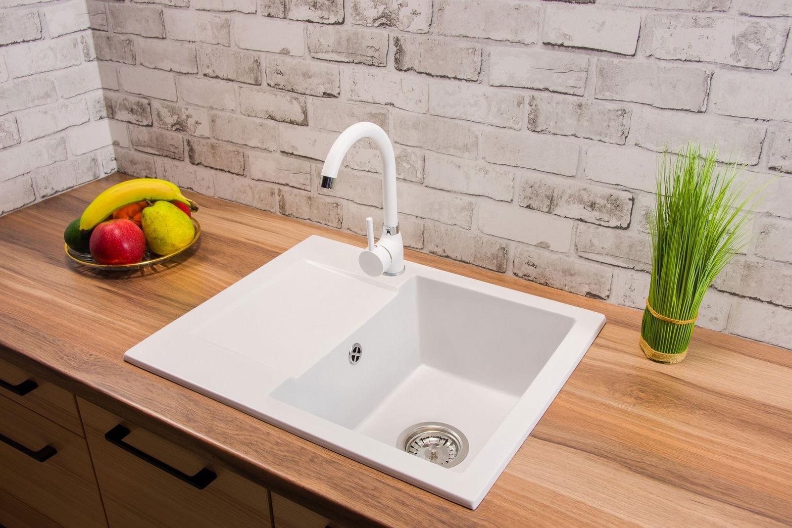 Chiuvetă de bucătărie Dalgam (alb) (cu 2 orificii pentru robinet) (S)