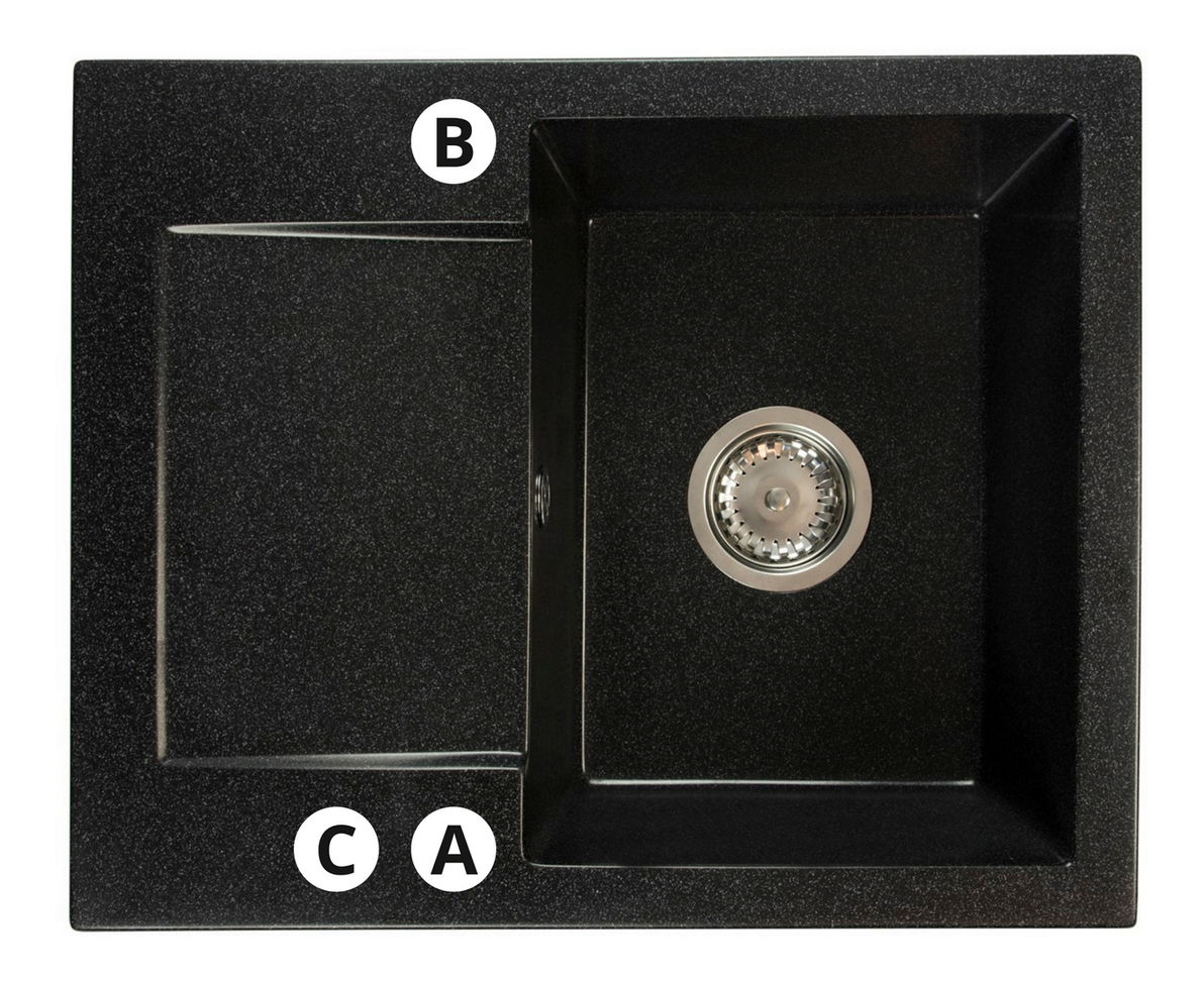 Chiuvetă de bucătărie Dalgam (negru) (cu 3 orificii pentru robinet) (S)