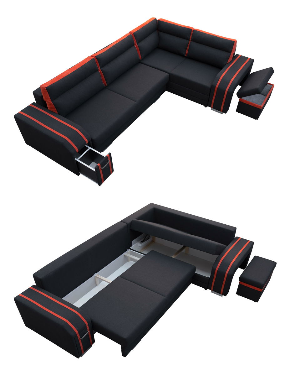 AfișeazăCanapeaua de lux cu captarea practică. Nu aveți nevoie de taburet care, în cazul în care nu îl folosiți vă va ocupa mult loc. Această canapea pe colț ascunde un taburet într-o cotieră. Îl puteți scoate simplu și îl puteți folosi pentru odihnirea picioarelor obosite sau pentru șederea oaspeților. În plus conține și un spațiu de depozitare practic. În cea de-a doua cotieră se află un sertar care se poate folosi ca bar. În cazul în care oaspeții au nevoie de un loc unde să doarmă, puteți extinde canapeaua și se va forma un spațiu de dormit. În ambele părți ale canapelei se află un spațiu de depozitare în care puteți pune lenjeriile de pat, pernele și păturile. Așa cum se spune, odată cu cumpărarea acestei canapele veți obține multă muzică în schimbul unei sume mici de bani.