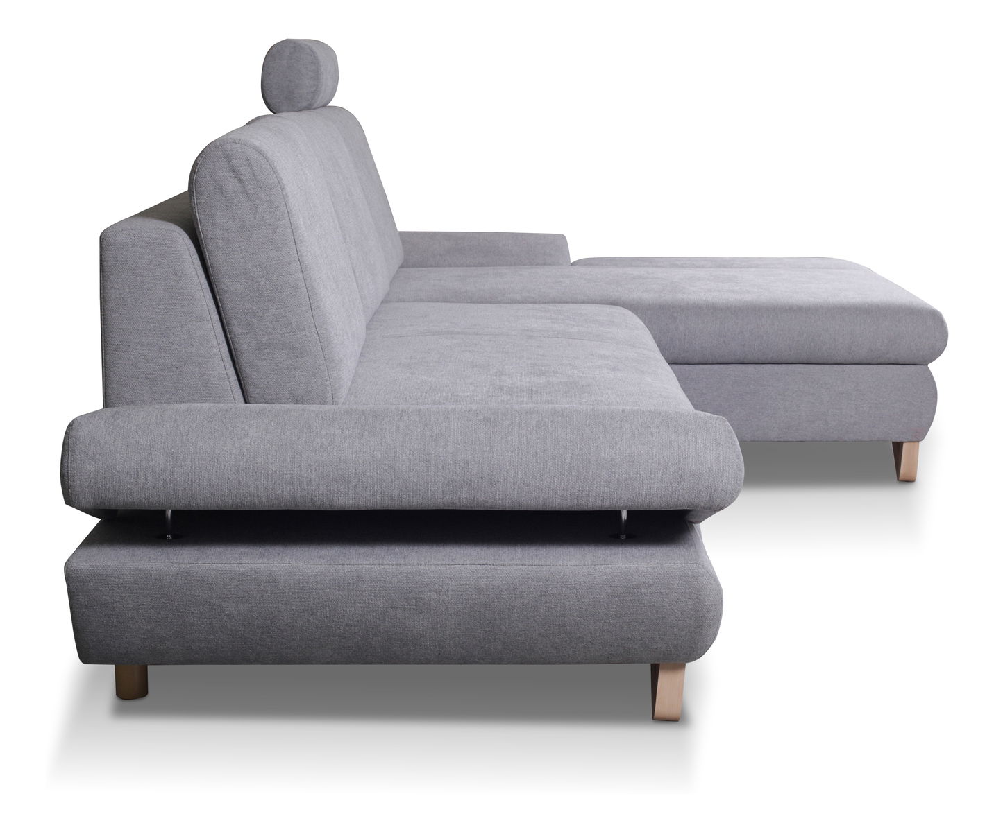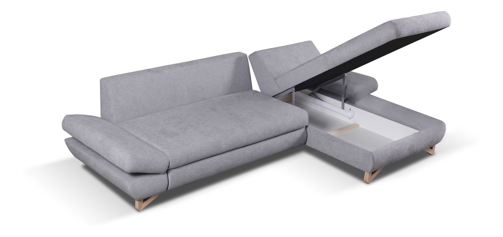 AfișeazăCanapea Aveley de culoare gri deschis completată de picioare deschise din lemn. Extinderea automatică și spațiul de depozitare fac această canapea practică.