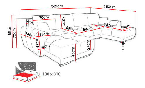 - Forma în U creează un spațiu generos de relaxare, ideal pentru momente petrecute în familie sau cu prietenii, fie că urmărești filme, te joci sau socializezi.