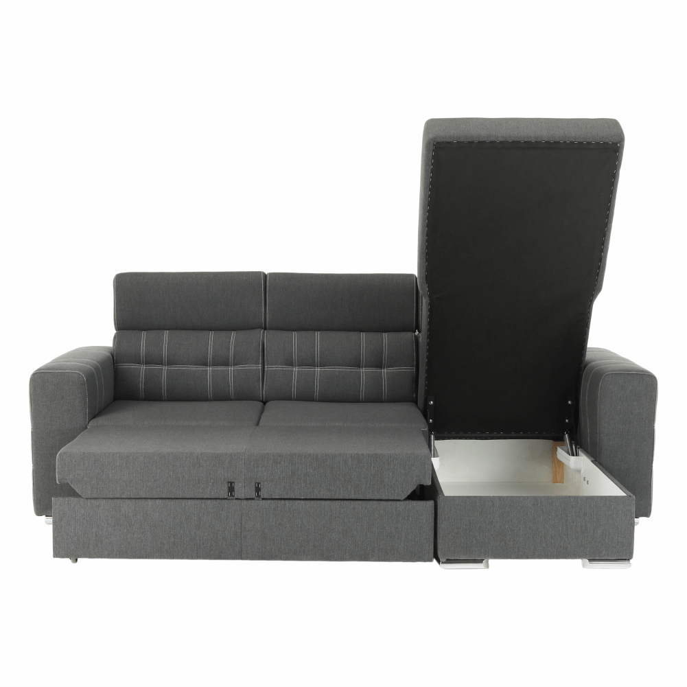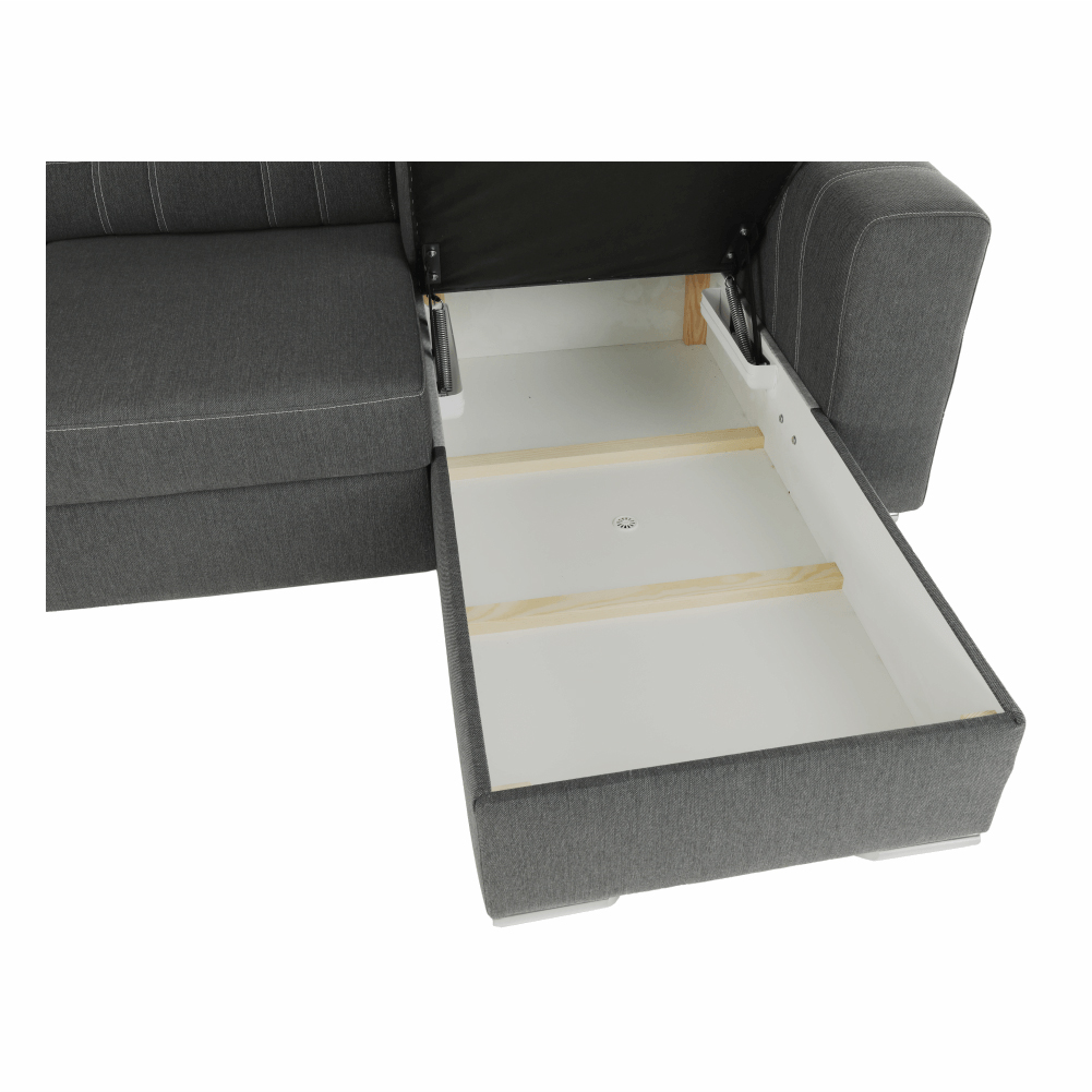 Colțar cu design interesant, care oferă atât spațiu de depozitare precum și funcție de dormit. Versiune pe stânga.
